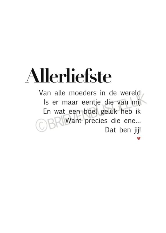 Wees oprecht en persoonlijk in je gedicht. Laat je ware gevoelens spreken en verwoord wat jouw moeder zo speciaal maakt voor jou. Door eerlijk en authentiek te zijn, raak je de kern van de emotie en creëer je een gedicht dat rechtstreeks uit het hart komt. Persoonlijke details en herinneringen kunnen het gedicht nog krachtiger maken, omdat ze laten zien dat je moeite hebt gedaan om iets unieks en betekenisvols te creëren voor jouw moeder op deze speciale dag.